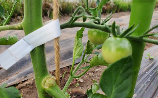 今年は千果という品種を定植しました。とても育てやすいミニトマトです。色づいてくるのが待ち遠しいです。