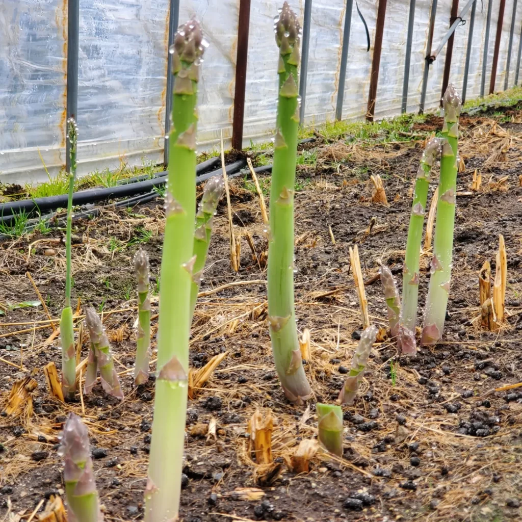 ようやく気温が上がり、アスパラの収穫が来週くらいから始まります。先ほど炒めて食べましたが、今年も柔らかくて甘いアスパラです♪