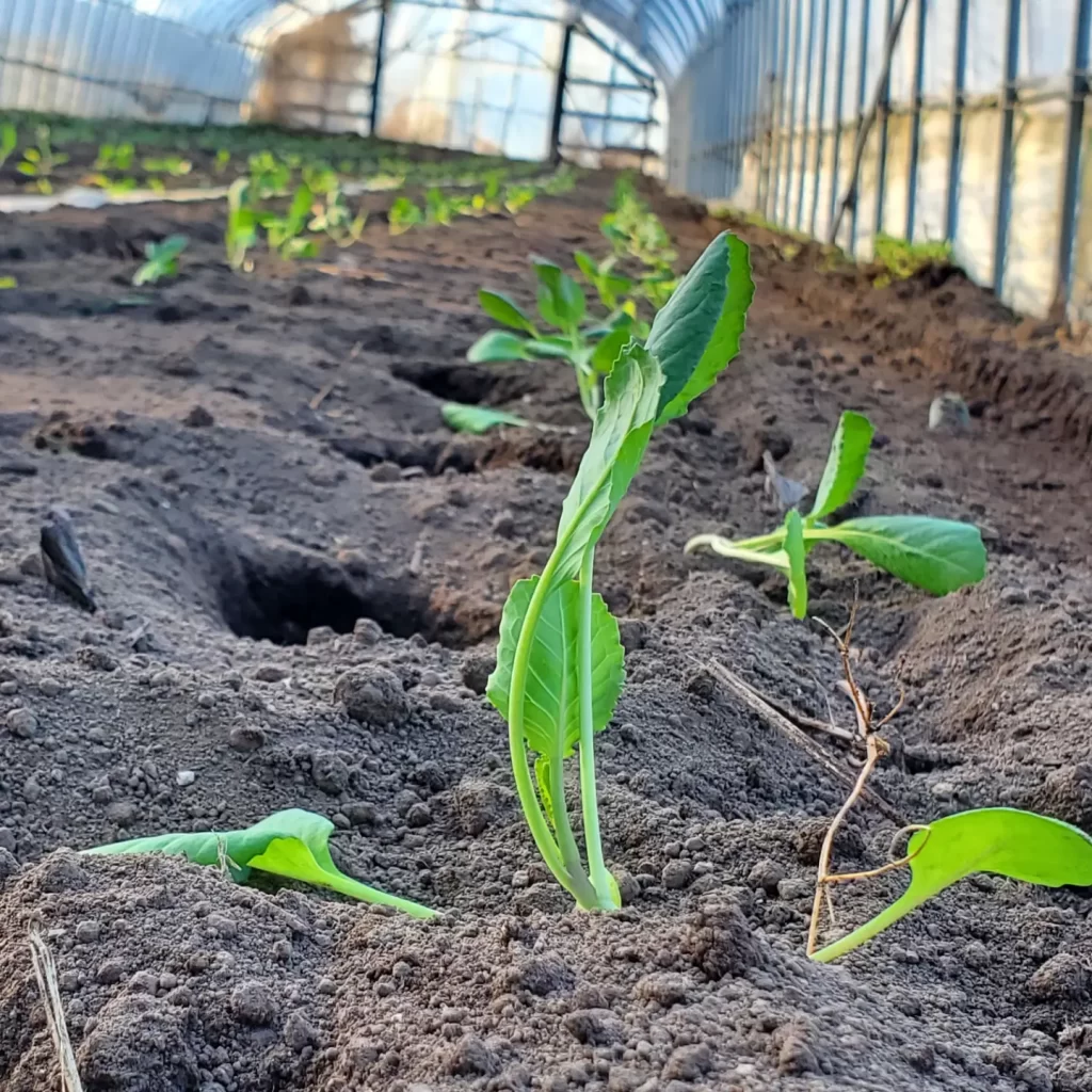 今年は例年よりアスパラの収穫が遅くなっています。まだ外の畑には雪があり、朝晩は寒いです。ハウスにはキャベツやレタス、スナップエンドウ、ほうれん草が植えられています。