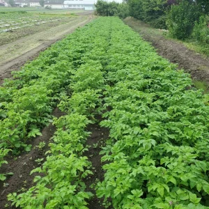 なすとじゃがいも 2023年6月25日 しのはらっぱ農園ブログ 湿度は高いですが涼しくて過ごしやすい朝です。なすが一番花をつけました。収穫まではまだ時間がかかりそうです。じゃがいもも大きく成長してきています。いろいろな野菜が元気に育っています。