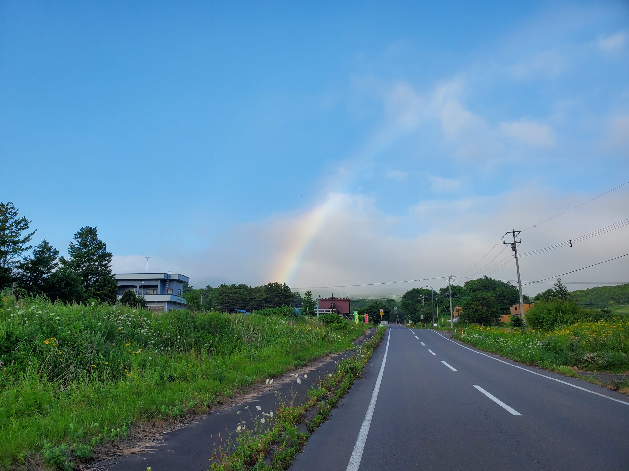 畑は水不足で、作物も枯れてしまいそうです。雨が待ち遠しいです。そんな中、偶然にも虹を見ることが出来ました。